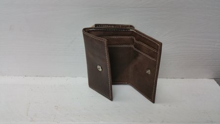 Kleine portemonneetje gemaakt van 100 leer met ruimte voor twee pasjes, geld en munten.