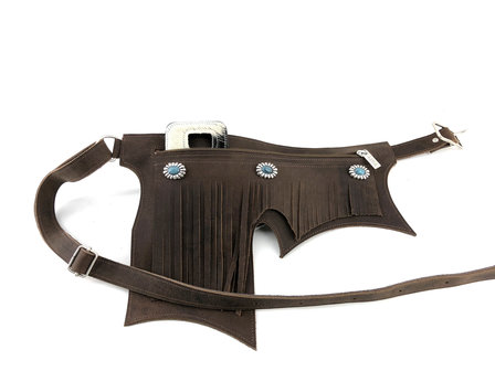 Koeienhuid/lederen heuptasje met verstelbare riem